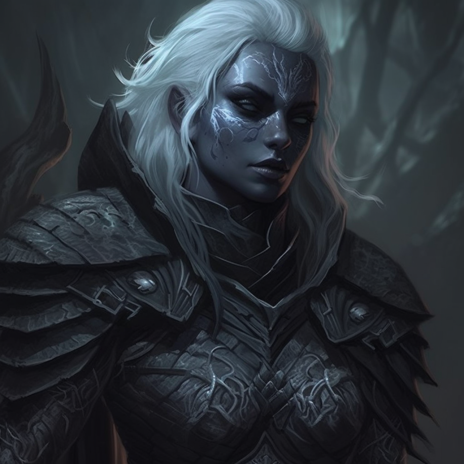Drow differ slightly than other elves. They have skin that varies from light grey to deep black, and stark white hair. They are exceptionally adapted to living underground, and are quite sensitive to sunlight. They are also known for their affinity for singing, and their sacred songs known as The Acrylons.