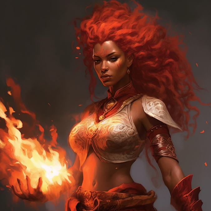 Genasi look quite similar to Humans, but bear distinct colored markings that look like tattoos colored either black, red, white, blue, or green. These colors correspond to a Genasi’s connection to the elements. This connection is formed by a bond with a strange cast of beings called Sylfs. This bond grants Genasi with a control of Fire, Water, Earth, or Wind.