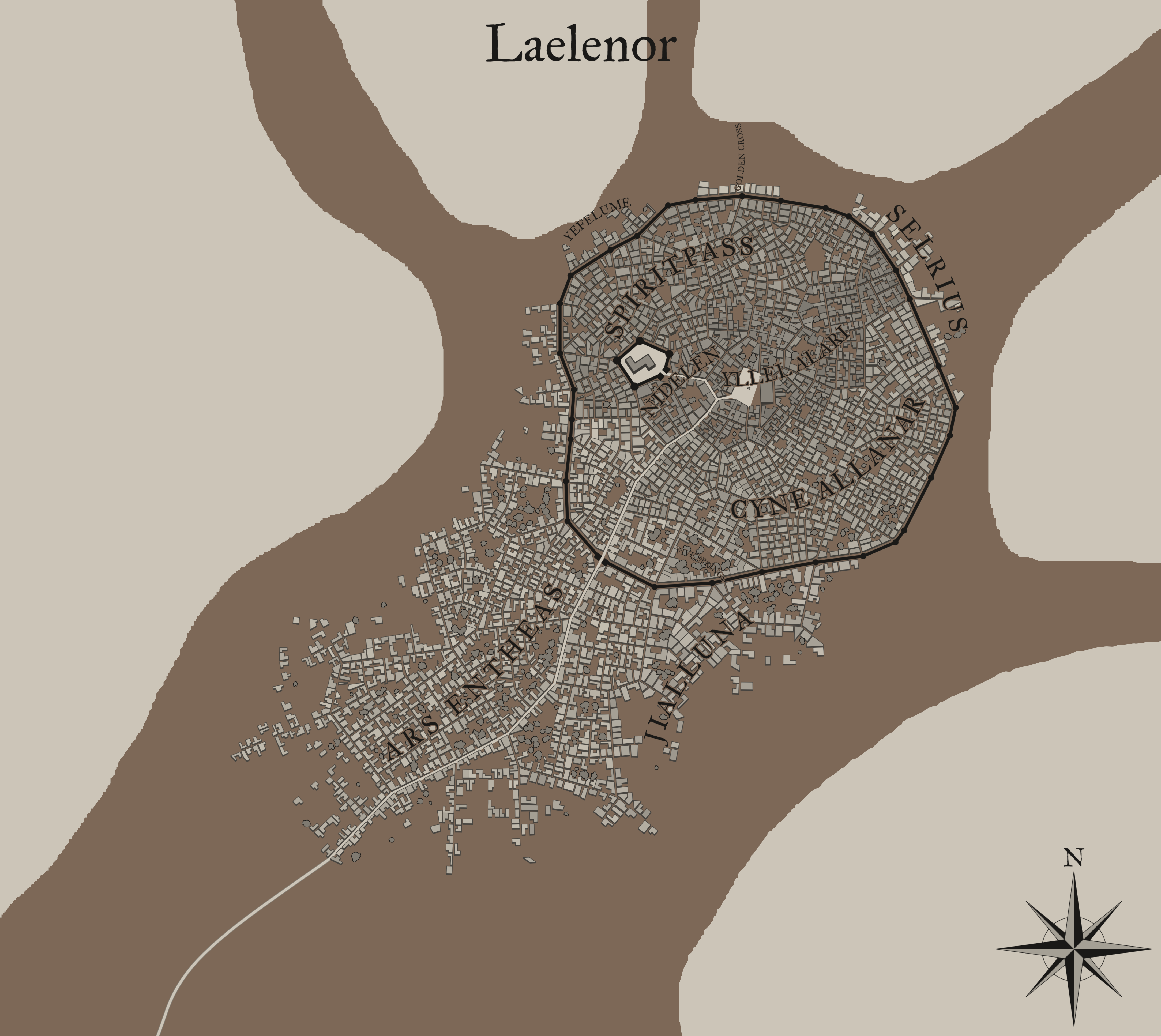 Similar to its sister elven cities, it is not a place built for outsiders. However unlike the others it does allow visitors through an ancient law known as The Rite of Creszar. Stemming from a legend of a Dragonborn hero named Creszar who crossed The Three Corners, and sought the sap of The Hailent Tree to cure his teacher of a great illness. He stayed for three days to regain his strength, and on each day of Creszar’s time in Laelanor, he proved himself to be a worthy guest of the city. The Rite of Creszar allows for anyone who seeks the power held within The Hailent Tree to come and stay within the city for no more than three sunrises. By the fourth sunrise, one must depart from the city and not return unless invited by the Maer, or after 50 days have passed.